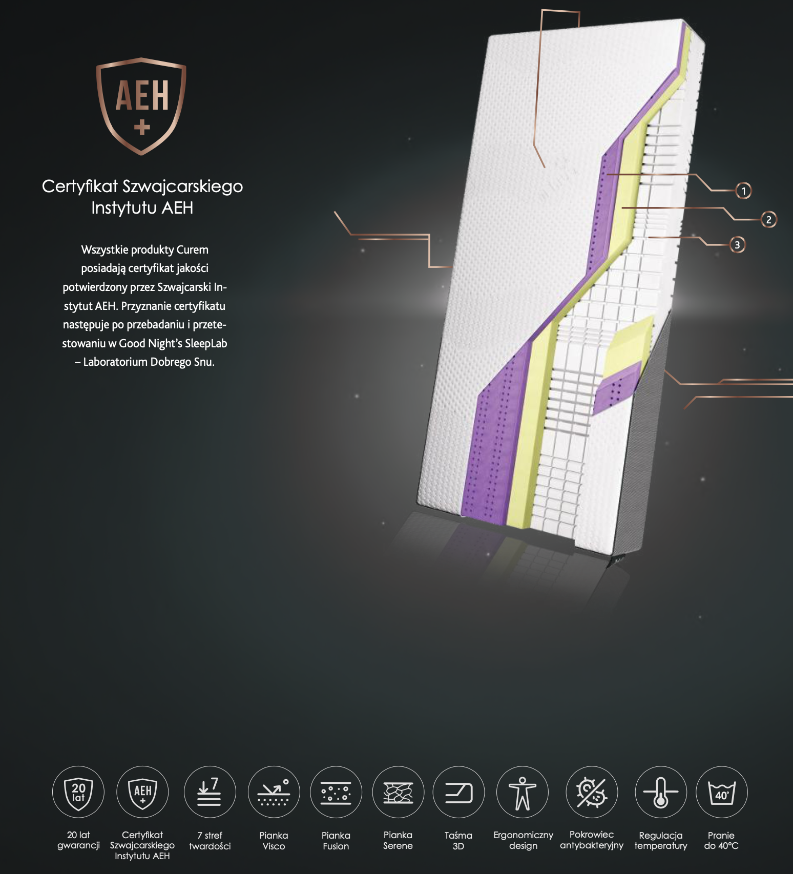 Budowa materaca Curem .reg – 3 warstwy komfortu
