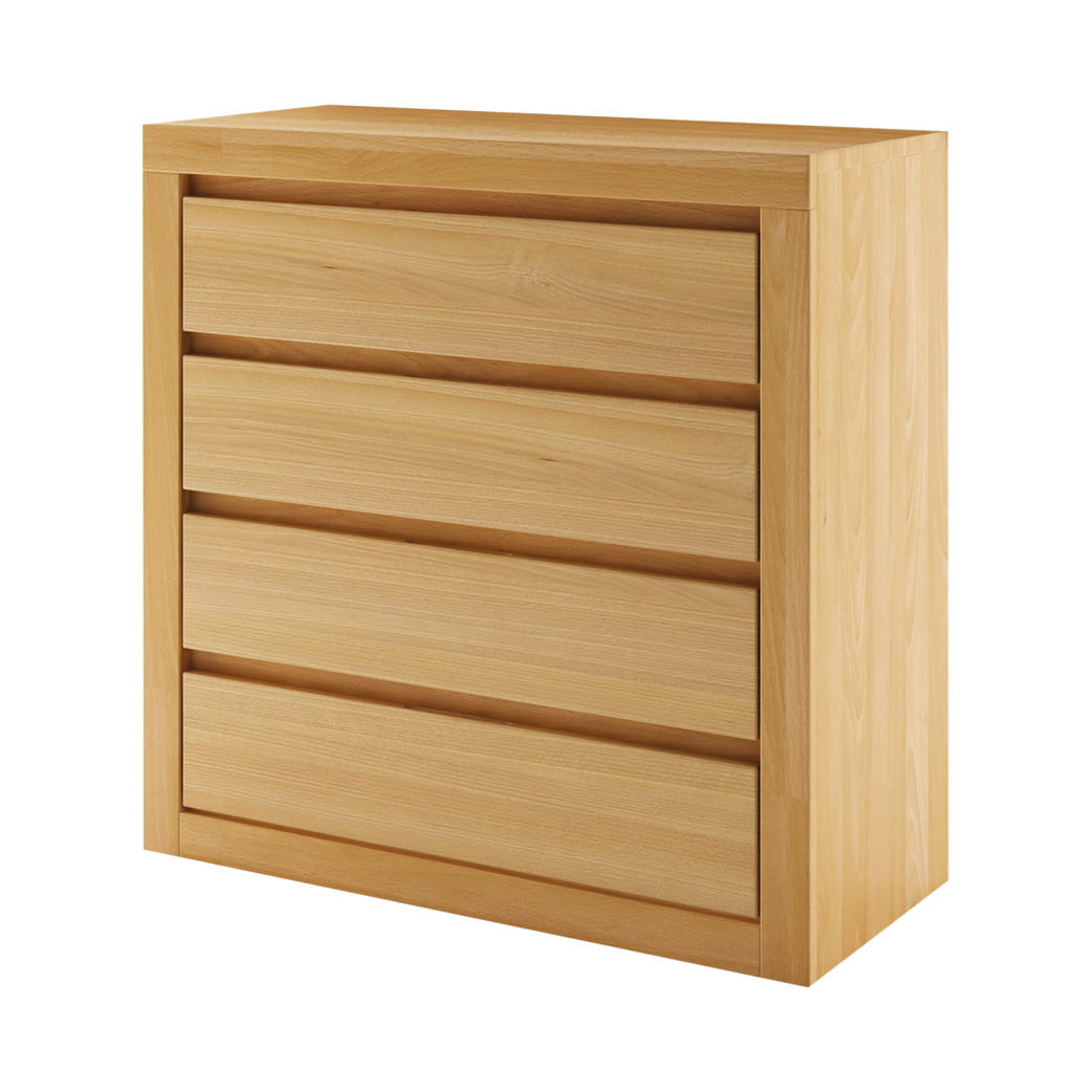 Komoda posiada cztery pojemne szuflady, które pomieszczą wszystkie niezbędne przedmioty. Prosty, minimalistyczny design oraz wyraźnie widoczne usłojenie drewna dębowego sprawiają, że komoda KD303 idealnie wpisuje się w nowoczesne wnętrze.