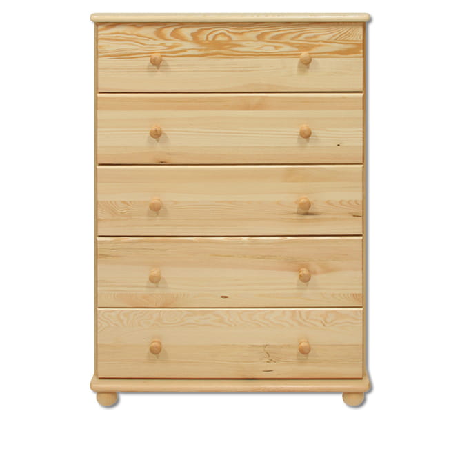Komoda jest wykonana z litego drewna sosnowego, dzięki czemu jest solidna i trwała. Drewno sosnowe jest również naturalnym materiałem, który nadaje komodzie ciepły i przytulny wygląd.