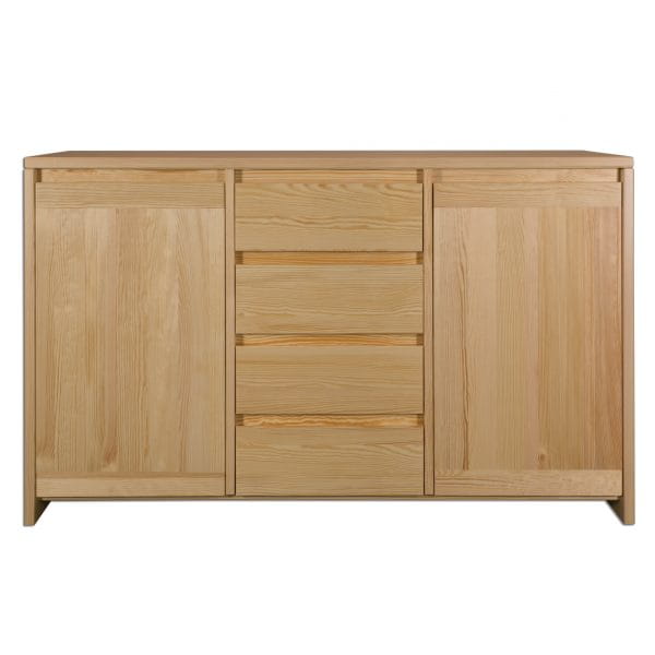 Komoda KD171 posiada cztery duże szuflady i dwie szafki boczne, które pomieszczą wszystkie niezbędne przedmioty. Sosnowy blat mebla posłuży do eksponowania rodzinnych pamiątek lub zdjęć.