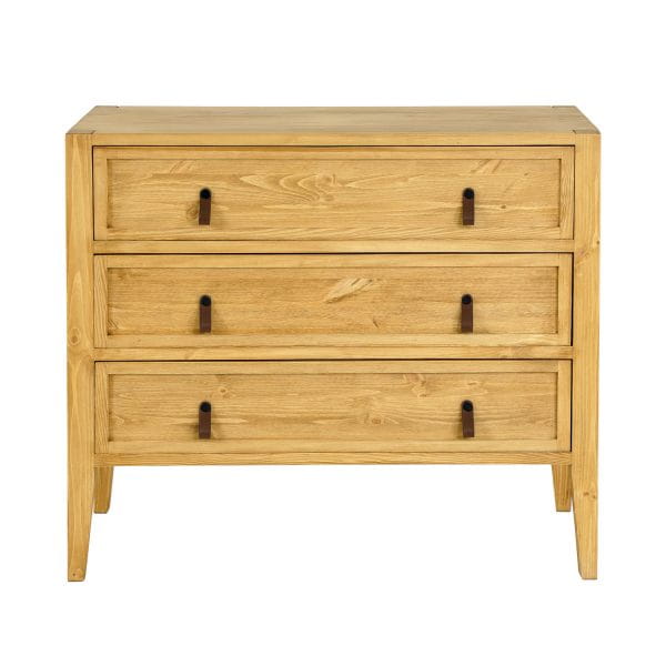 Wykonana z litego drewna sosnowego, komoda KD713 jest trwała i solidna. Jej rustykalny styl dopełniają skórzane uchwyty, które nadają jej niepowtarzalny charakter.