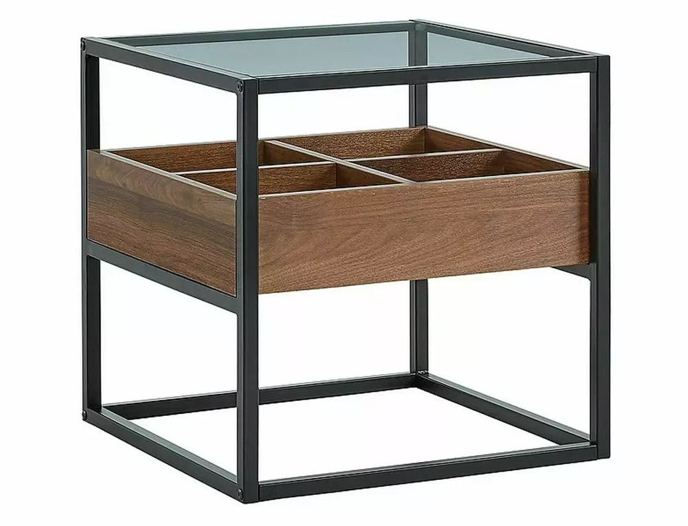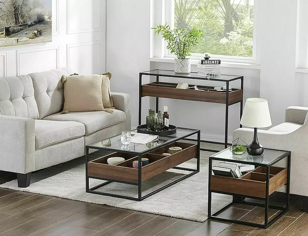 Ława Harmony B to kompaktowy, nowoczesny mebel, który idealnie wkomponuje się w różne aranżacje wnętrz. Dzięki połączeniu transparentnego szkła hartowanego z eleganckim wykończeniem w kolorze orzecha, ława wnosi do pomieszczenia styl i funkcjonalność.