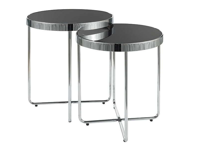 Blaty z czarnego szkła hartowanego nadają ławom wyrafinowanego i nowoczesnego charakteru. Stelaże dostępne w dwóch wariantach kolorystycznych – chromowanym i złotym – dodają elegancji i stabilności, tworząc idealne połączenie z czarnymi blatami.