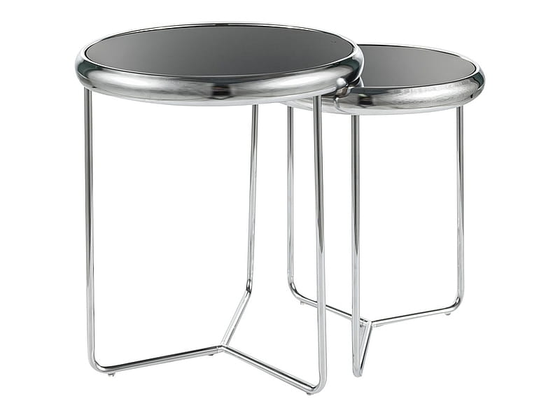 Blaty z czarnego szkła hartowanego dodają stolikom elegancji, a stelaże dostępne w wersji chromowanej lub złotej wnoszą nowoczesny akcent, idealnie uzupełniając wystrój wnętrza.