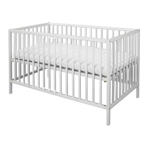 Łóżeczko dostępne jest w rozmiarze 60x120 cm i w kolorze białym, który idealnie komponuje się z każdym wystrojem pokoju dziecięcego.