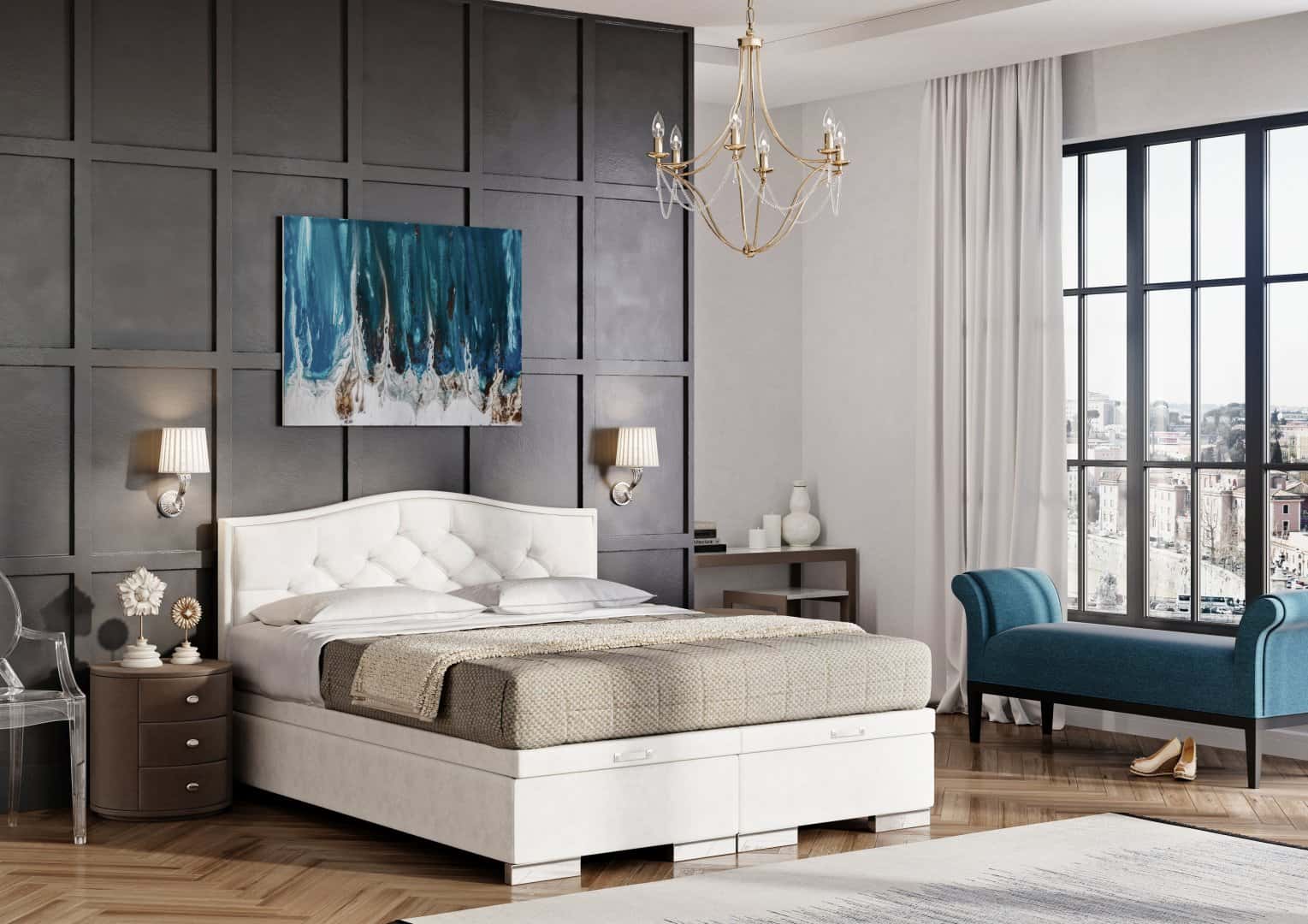 Połączenie funkcjonalności pojemnika z luksusową, wysoką bazą hotelową (boxspring). Idealny fundament dla komfortowego systemu snu.