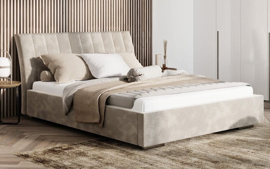 Sercem łóżka Naomi Prestige i jego najbardziej charakterystycznym elementem jest eleganckie, subtelnie wyprofilowane wezgłowie.