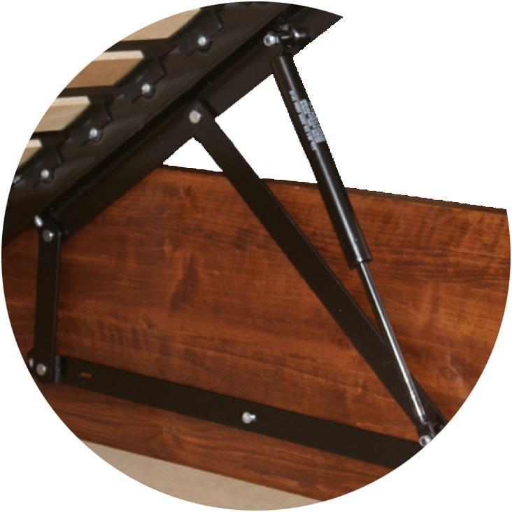 - Pojemnik na Pościel: Łóżko zawiera pojemnik na pościel, który jest dostępny w standardzie. Stelaż elastyczny na ramie stalowej z siłownikami gazowymi umożliwia łatwe otwieranie zarówno od frontu, jak i od boku łóżka.