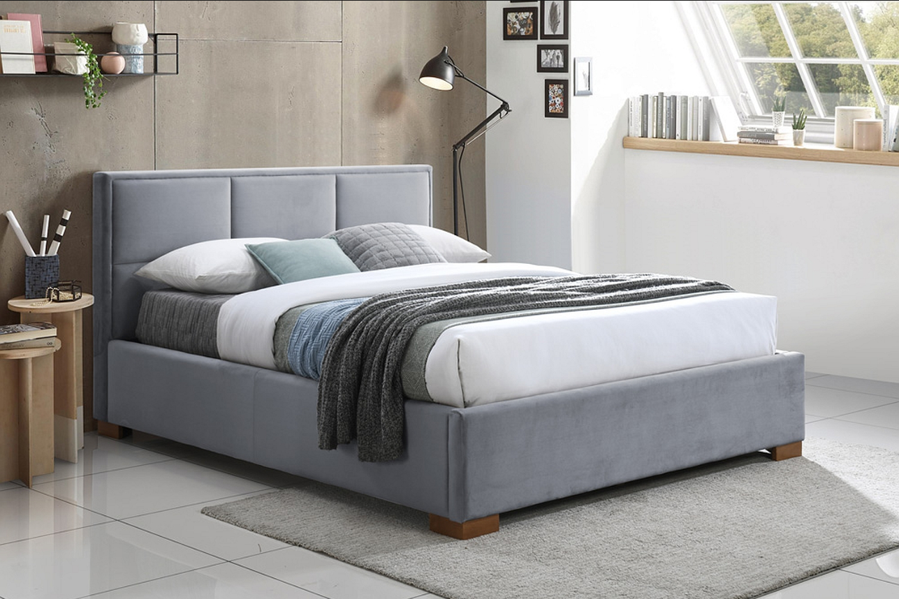 Dostępne kolory to elegancki szary lub stonowany beż, co pozwala dopasować łóżko do własnych preferencji i stylu aranżacji sypialni.