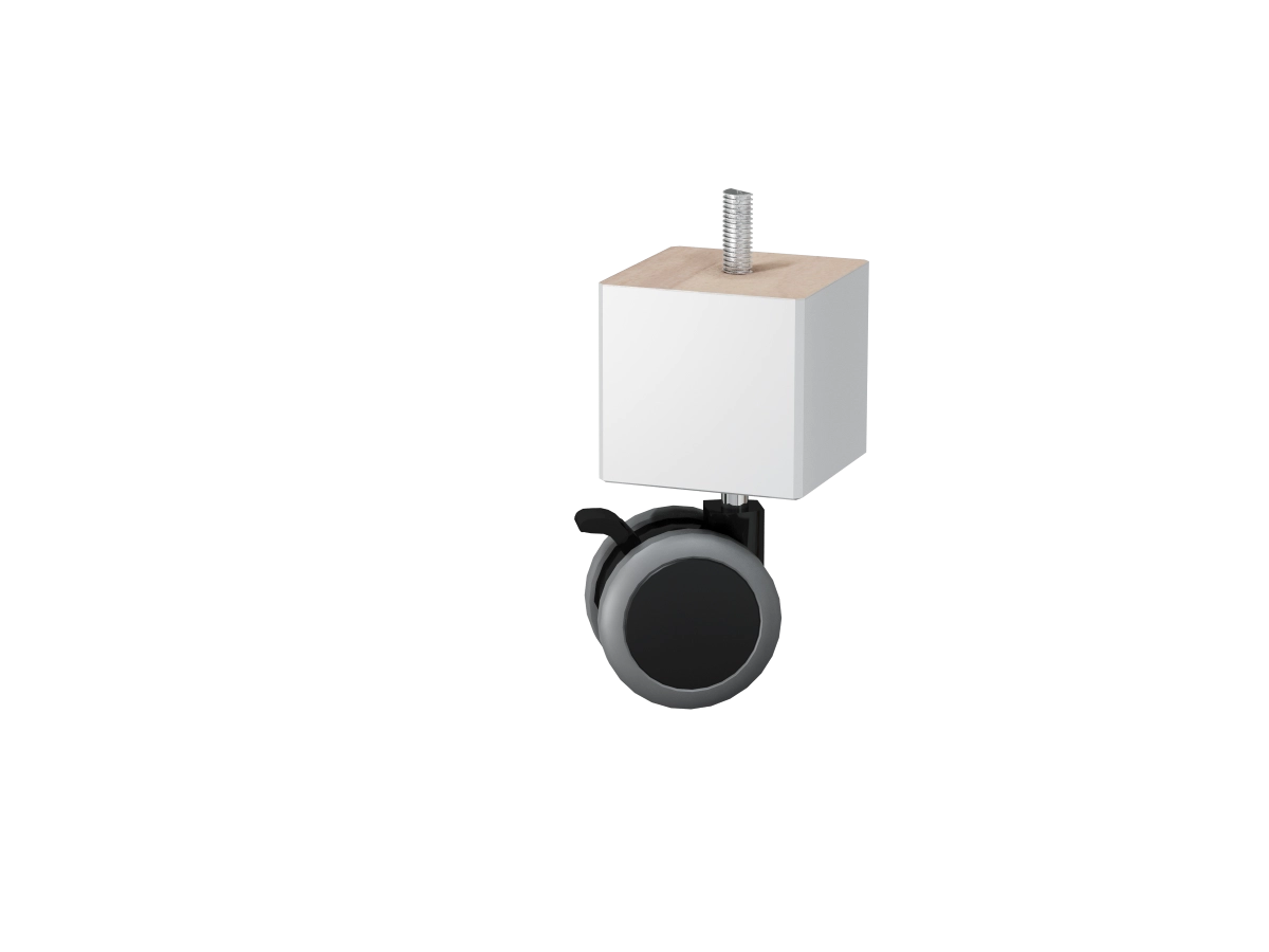 Nowa noga drewniana w świeżym odcieniu bieli z praktycznym dodatkiem – kółkiem! Noga drewniana, biała, o wysokości 12 cm, idealnie pasuje do łóżek ze stelażem.