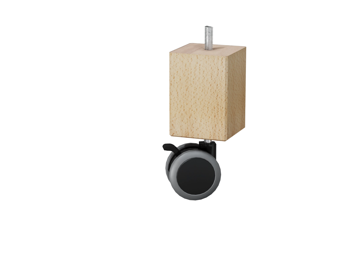 Noga drewniana naturalna z kółkiem 15 cm - noga do łóżka ze stelażem