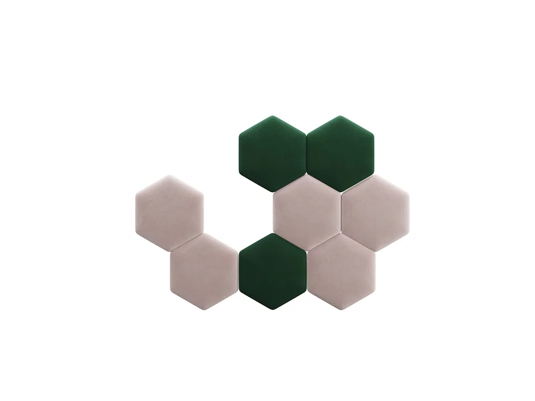 Panel tapicerowany heksagon doskonale komponuje się z tapicerowanymi łóżkami, tworząc zgrany duet nowoczesnego designu. Kontrastujące formy i tekstury dodają sypialni elegancji i stylowego wyrazu.
