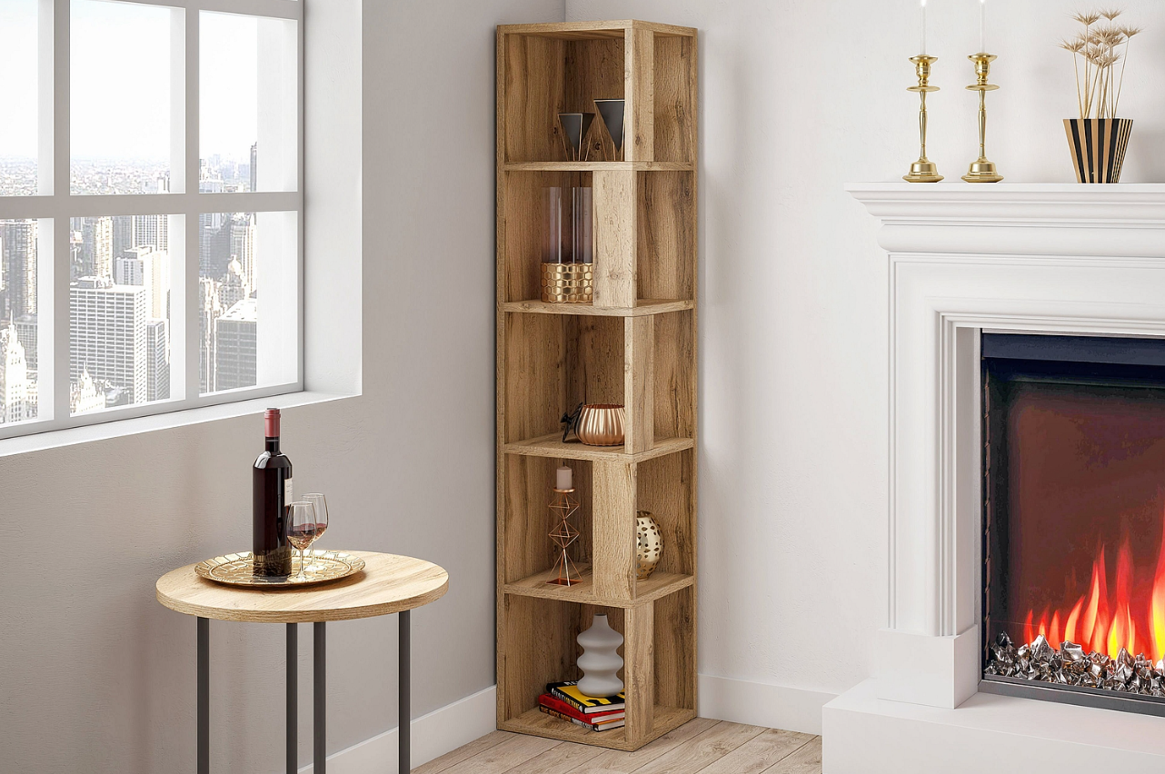 - Funkcjonalność: Regał Tiki posiada pięć półek, które zapewniają wystarczająco dużo miejsca do przechowywania przedmiotów. Dzięki niewielkim wymiarom regał jest idealny do małych pomieszczeń.