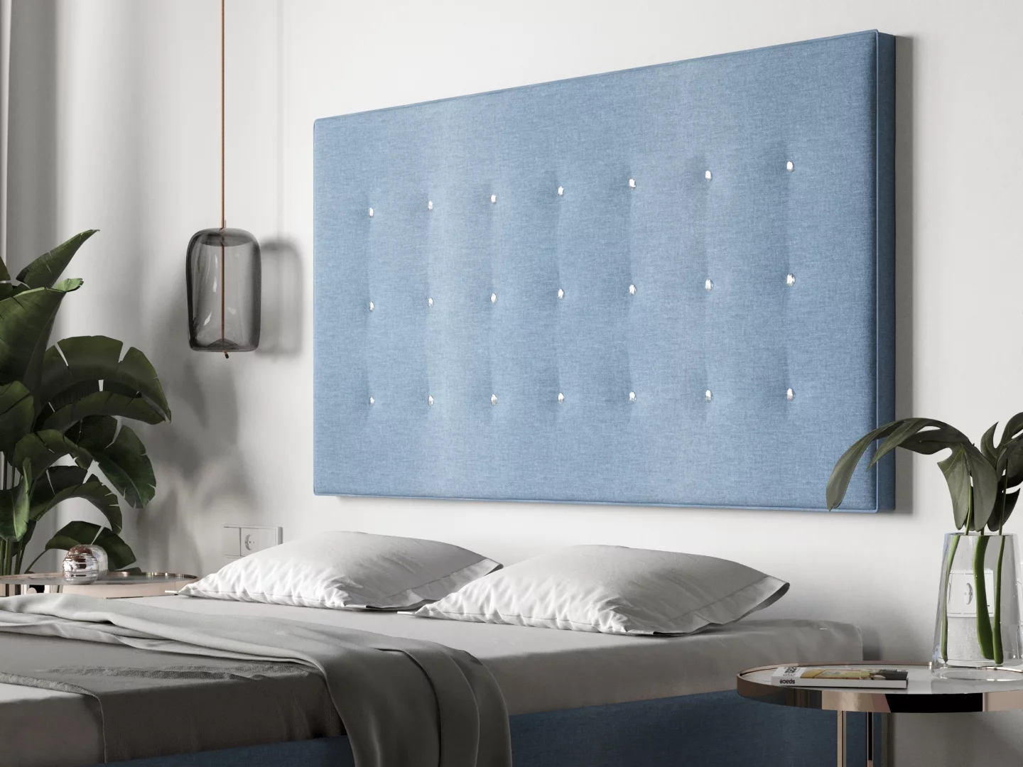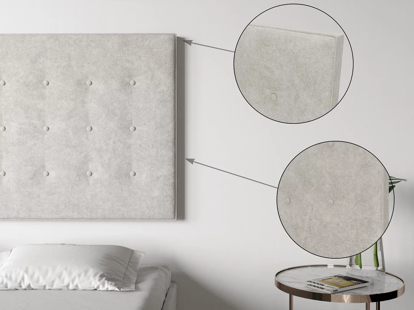 Wykonany z płyty obitej owatą i tkaniną meblową, dostępną w szerokiej gamie kolorystycznej, nasz zagłówek doda elegancji każdej sypialni. Możesz dostosować szerokość panelu do swoich potrzeb, a rozmiary inne niż standardowe są dostępne na zamówienie. Panel doskonale sprawdzi się również jako dekoracyjny element na ścianie, dzięki systemowi montażowemu, który jest częścią wyposażenia.