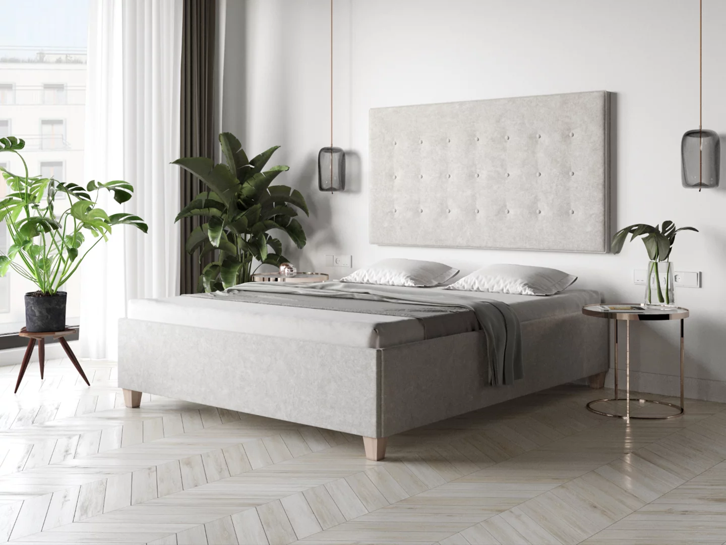 Standardowe szerokości zagłówka obejmują: x + 1 cm, x + 6 cm, x + 9 cm, x + 14 cm, x + 21 cm, gdzie x oznacza typową szerokość materaca przewidzianego do danego łóżka. W trakcie składania zamówienia, wybierz jedną z standardowych szerokości zagłówka panelowego.