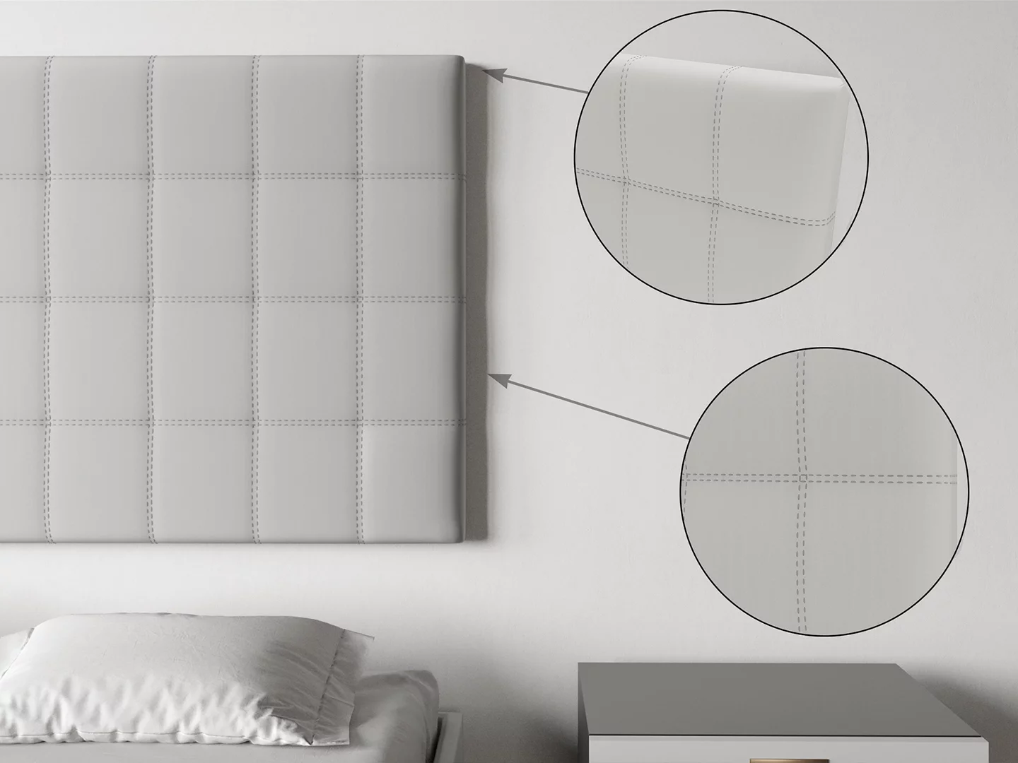Wprowadź do swojej sypialni unikalny akcent stylu, wybierając nasz średni zagłówek panelowy ZPS040 o wysokości około 90 cm i subtelnej grubości 6 cm. Stworzony z myślą o doskonałym dopasowaniu do korpusów z serii Multisystem, ten zagłówek zachwyca oryginalnym wzorem przeszycia w kształcie kwadratów, wykonanym z podwójną nitką.
