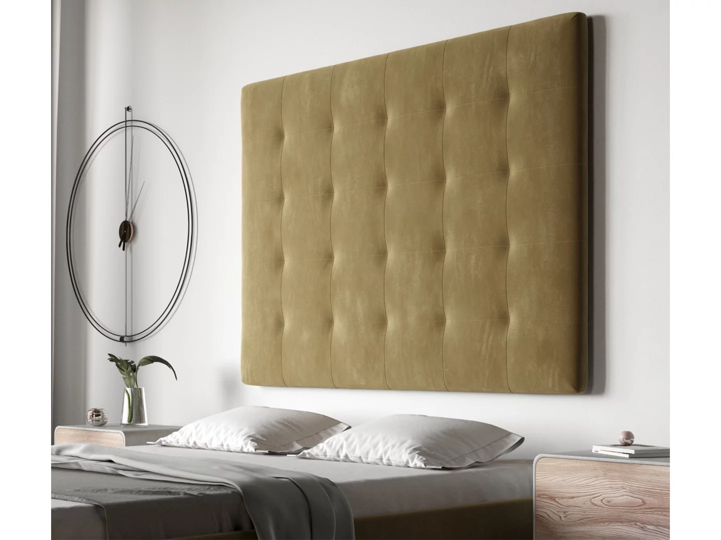 Standardowe szerokości obejmują: x + 1 cm, x + 6 cm, x + 9 cm, x + 14 cm, x + 21 cm, gdzie x oznacza typową szerokość materaca przewidzianego do danego łóżka. W trakcie składania zamówienia, wybierz jedną z dostępnych standardowych szerokości zagłówka panelowego.