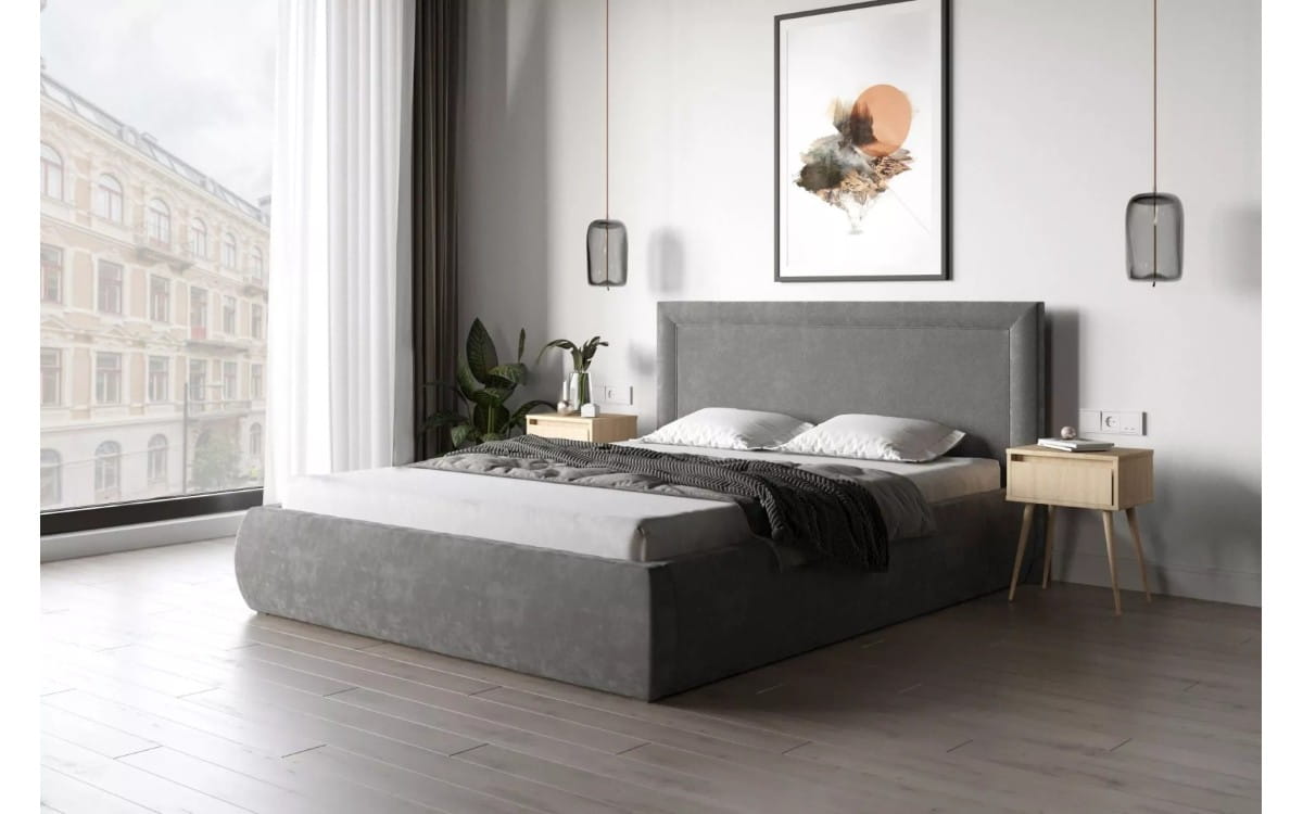 Prostolinijny, elegancki zagłówek idealnie współgra z korpusami z serii BoxMultisystem, oferując szeroki wybór tkanin tapicerskich, co pozwala na stworzenie unikatowej aranżacji sypialni, łącząc wezgłowie z korpusem według osobistych preferencji.